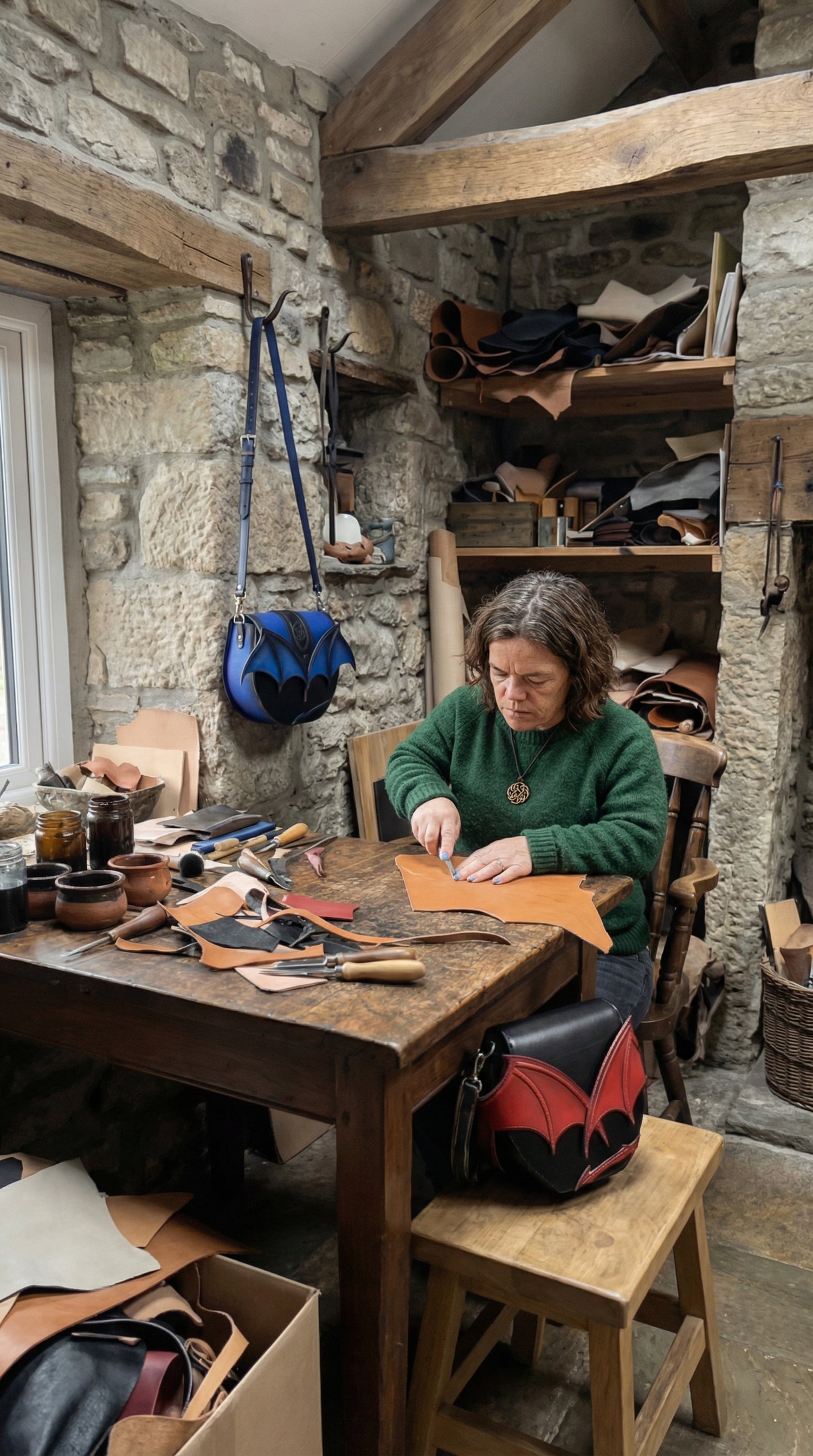 I'm Clara. I'm a dwarf, I'm Irish, and I've been working leather since my hands were strong enough to hold a blade. I built my workshop from nothing—just stone walls, a forge, and stubbornness. I craft every bag alone in my workshop. I cut the leather, stitch the wings, and shape every scale by hand. No factory, no assembly line, just me and the heat of the forge. I don't make these for everyone; I make them for the ones who understand.